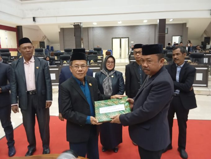 Penyerahan dilakukan oleh Wakil Ketua II DPRD, Arwi, kepada Sekretaris Daerah (Setda), Moh. Zain Mahmoed, dan disaksikan oleh Forkopimda serta undangan lainnya di gedung Paripurna DPRD.
