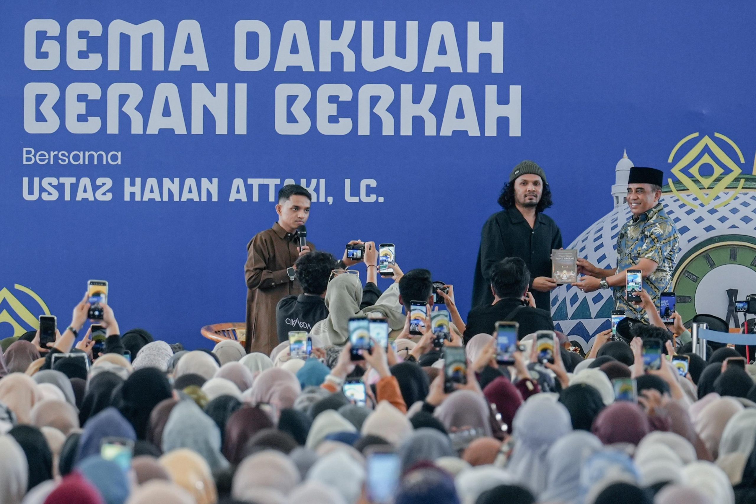 PALU – Ribuan masyarakat memadati Masjid Raya Baitulkhairaat, Kota Palu, Sulawesi Tengah, Rabu sore (15/4/2026). Kehadiran mereka untuk mengikuti tausiyah pendakwah nasional Hanan Attaki dalam acara bertajuk “Gema Dakwah Berani Berkah” yang menjadi bagian dari rangkaian Hari Ulang Tahun ke-62 Provinsi Sulawesi Tengah.