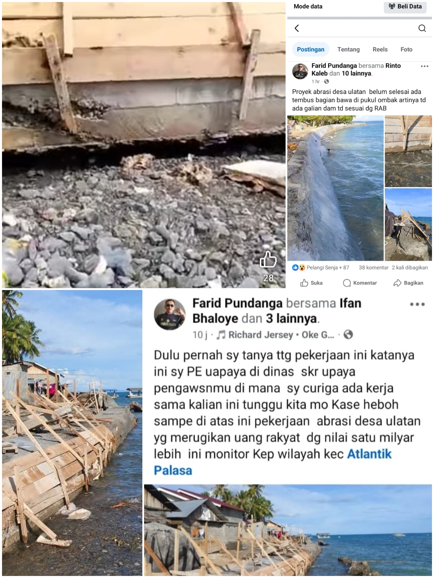 Namun berbeda dengan proyek abrasi pantai yang berada di kabupaten parigi moutong ,kecamatan palasa ,desa ulatan yang mendapatkan kritikan pedas dari salah seorang tokoh yang berasal dari utara parimo.