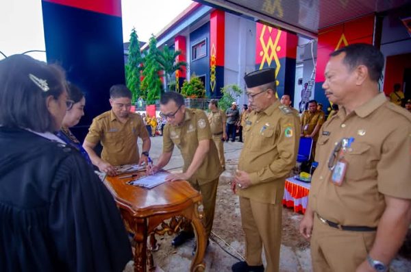 MORUT – Sebanyak 758 orang yang mendapatkan surat keputusan pengangkatan sebagai Pegawai Pemerintah dengan Perjanjian Kerja (PPPK) tahun 2023 dan 2024 dari Bupati Morowali Utara, dilantik secara resmi menjadi aparatur sipil negara oleh Bupati Delis Julkarson Hehi di pelataran kantor Bupati Morut di Kolonodale, Senin siang.