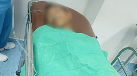 Serangan tersebut mengenai pundak dan lengan tangan kiri korban, menyebabkan luka yang cukup serius.