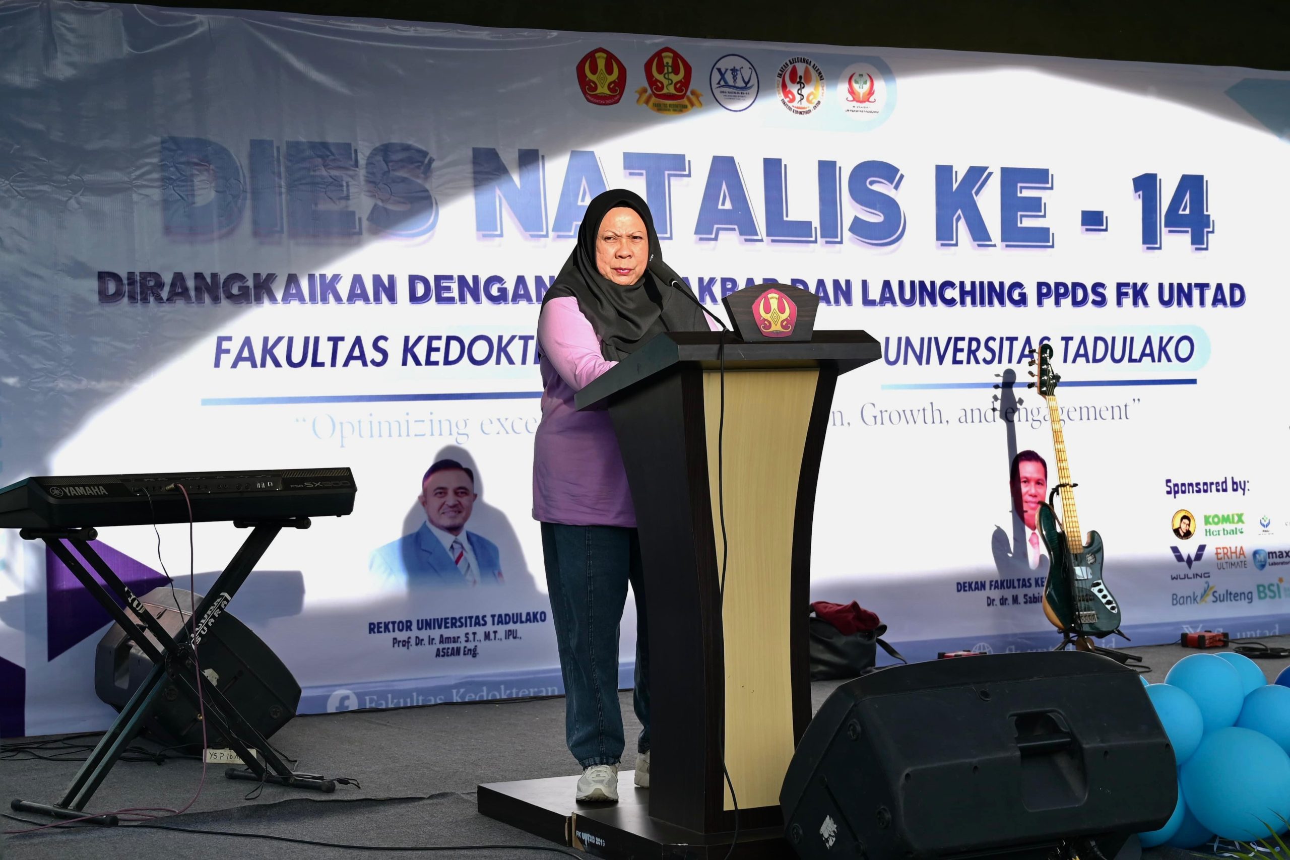 Momentum Dies Natalis ke-14 ini juga dirangkaikan dengan launching PPDS-1 Fakultas Kedokteran Untad yang membuka tiga program studi, yakni Penyakit Dalam, Bedah, dan Kebidanan. Wakil Gubernur kembali menyampaikan apresiasi atas terobosan tersebut.